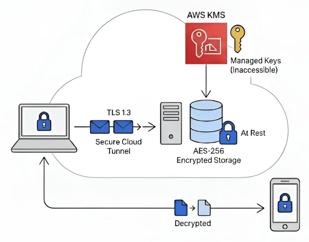 Encryption: TLS 1.3 and AES-256 (same standards used by global financial institutions)